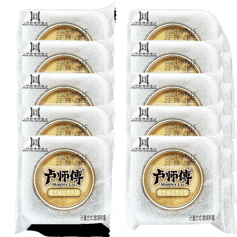 卢师傅红枣黑芝麻月饼10块中秋节网红小零食酥皮月饼烘焙糕点 无规格