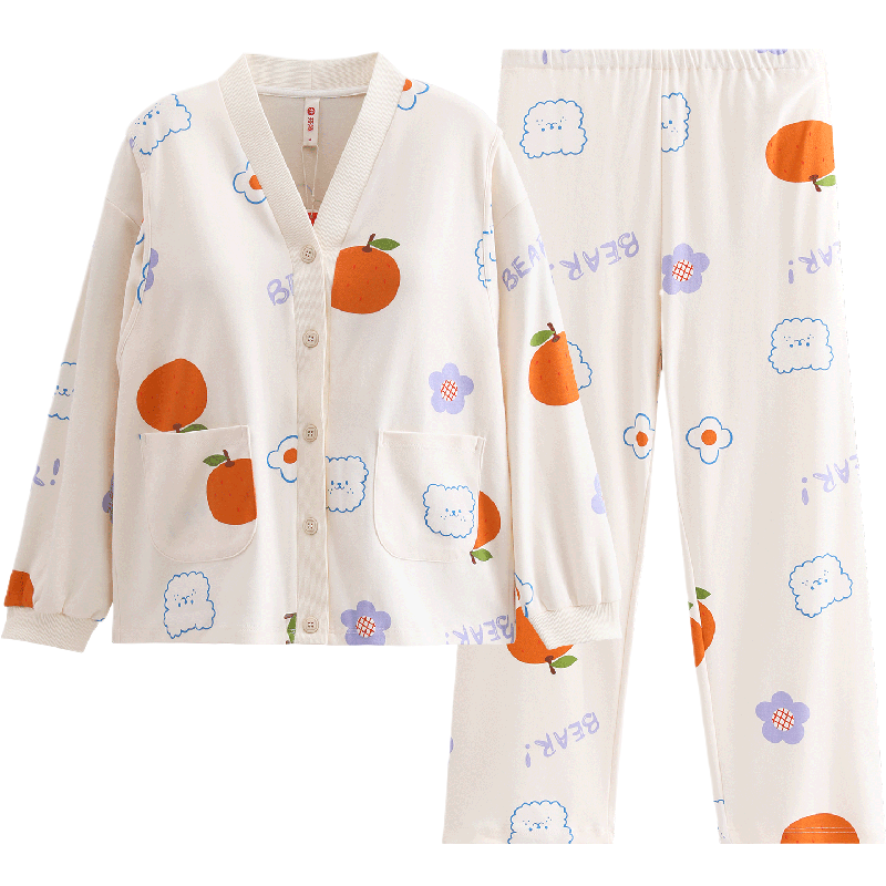 芬腾月子服纯棉春秋季孕妇长袖睡衣产妇产后喂奶哺乳家居服套装女 J98333797米杏 XL