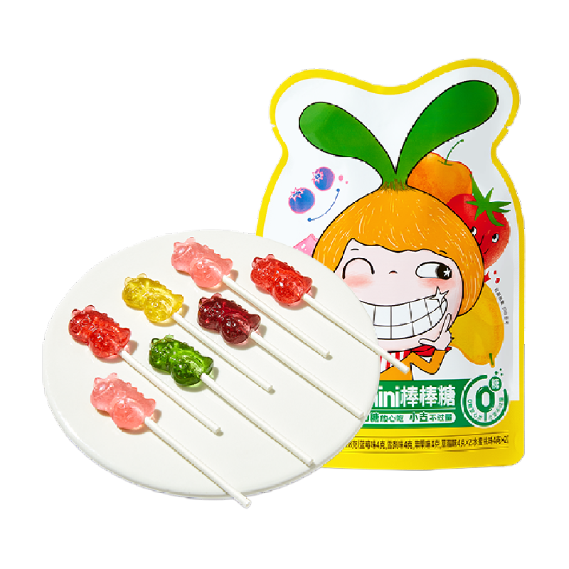 飞享家无糖棒棒糖网红糖果儿童节礼木糖醇棒棒糖儿童草莓糖果20支 【4种水果口味,拍1到手20支】不含白砂糖