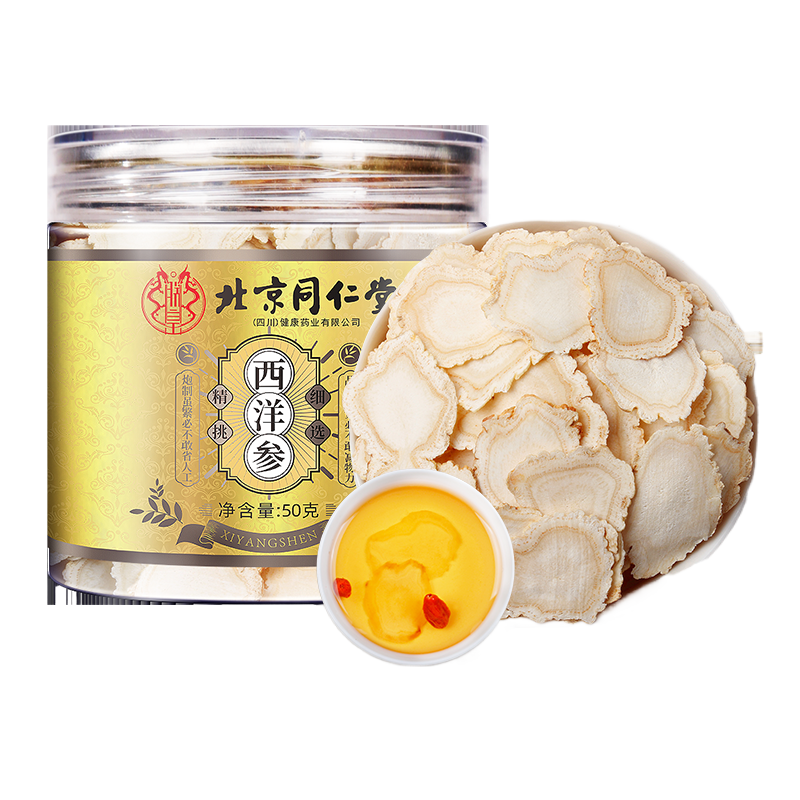 北京同仁堂人参片长白山切片泡水正品官方 100g 【片径约1.2-1.6cm】加拿大西洋参60克 1件