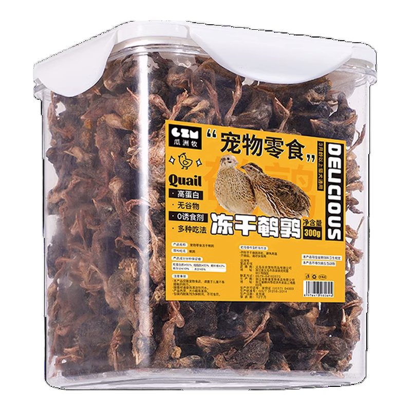 鹌鹑冻干猫零食猫咪零食增肥发腮生骨肉磨牙补钙宠物狗狗成幼猫粮 小鹌鹑【300克】桶装2桶装 50g