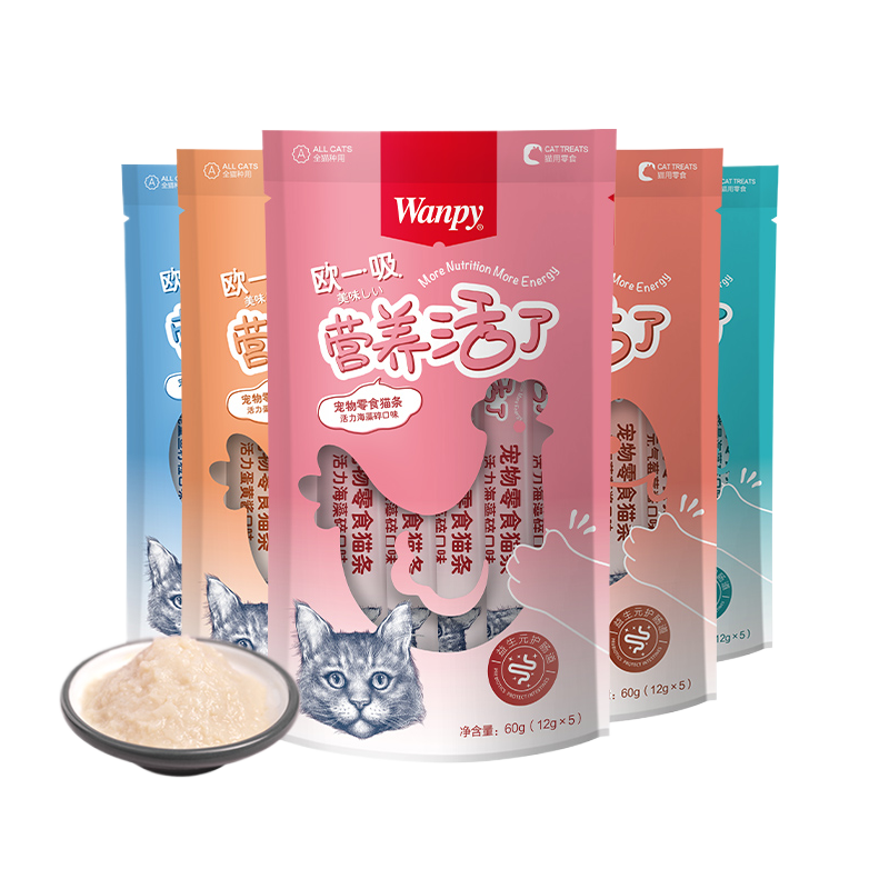 Wanpy顽皮欧一吸猫条猫零食猫湿粮猫咪零食猫罐头美毛猫条非主食 【经典款】混合口味随机发 60支
